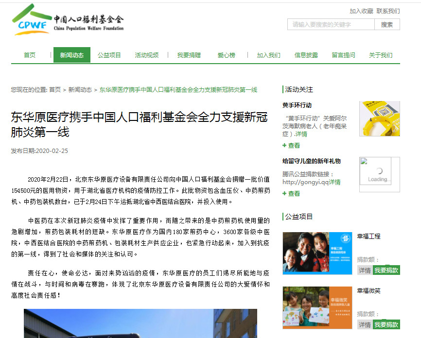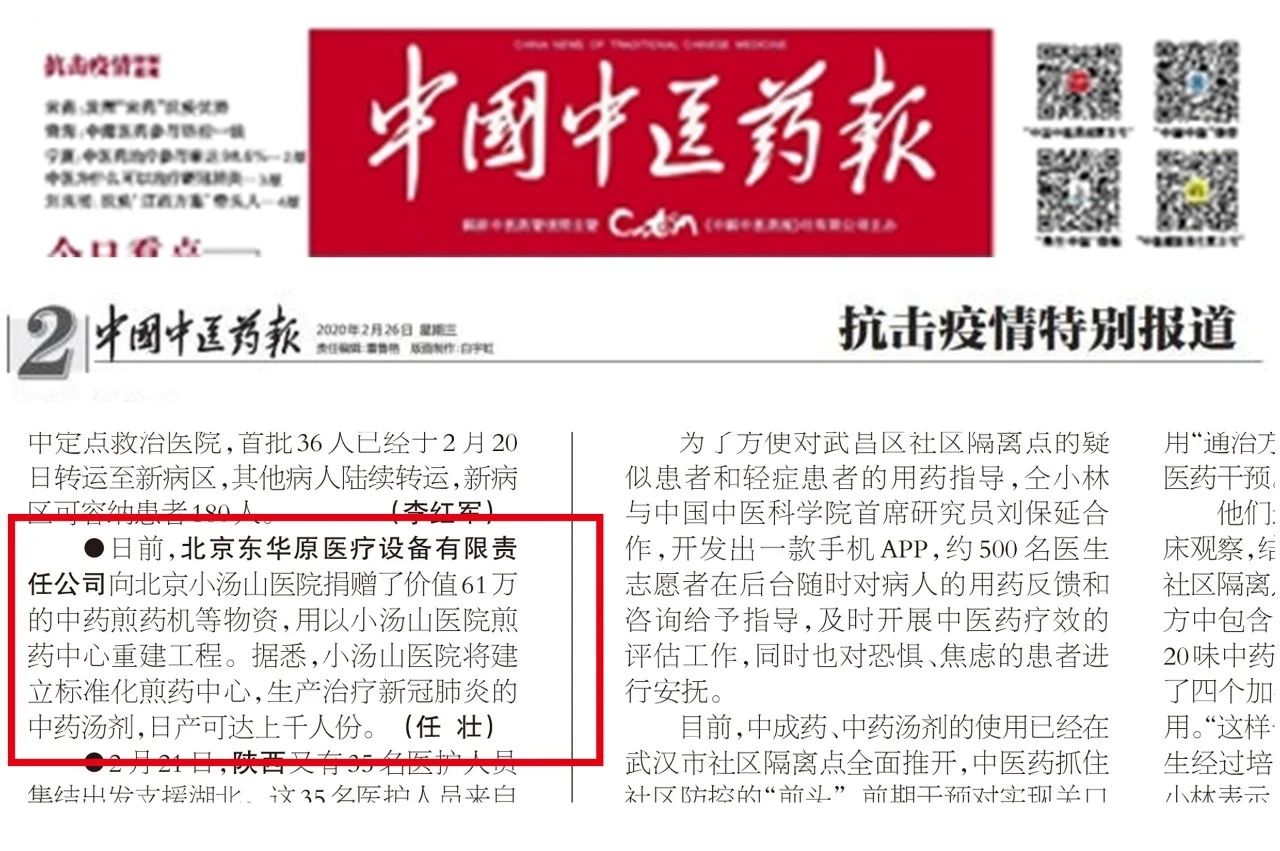 中國(guó)中醫(yī)藥報(bào)、中國(guó)人口福利基金會(huì)、北京勞動(dòng)就業(yè)報(bào)紛紛點(diǎn)贊東華原醫(yī)療抗疫速度