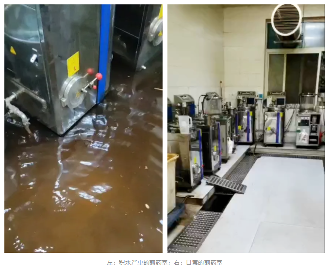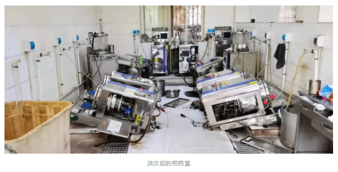 7月23日,東華原醫(yī)療接到河南省中醫(yī)院維修支援的請求。由于積水嚴重,醫(yī)院內(nèi)40多臺十功能自動煎藥機全部進水,電機也未能幸免,機器已無法使用。眾所周知,洪澇災害發(fā)生后,極易導致腸道、呼吸道等的傳染性疾病。中醫(yī)藥防治救治是其中關鍵的一環(huán)。修好機器,讓醫(yī)院煎藥室正常運轉,勢在必行。