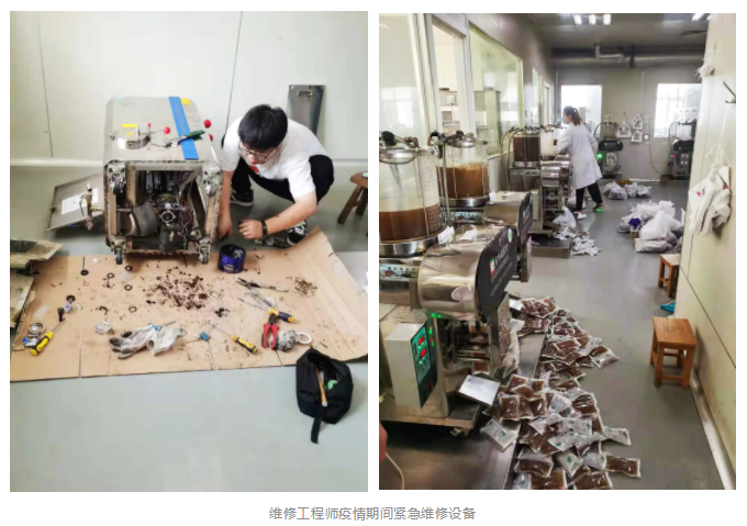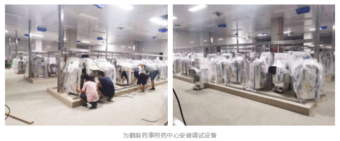 為了讓新設備盡早投入到疫情防控當中,南京分公司經(jīng)理霍靈瑜組織員工10人,在遵守當?shù)胤酪咭?guī)定的情況下,到鶴齡藥事煎藥中心安裝調(diào)試新設備,經(jīng)過2天的努力,新增的一百多臺煎藥包裝設備全部安裝調(diào)試完畢,可正常投入使用。