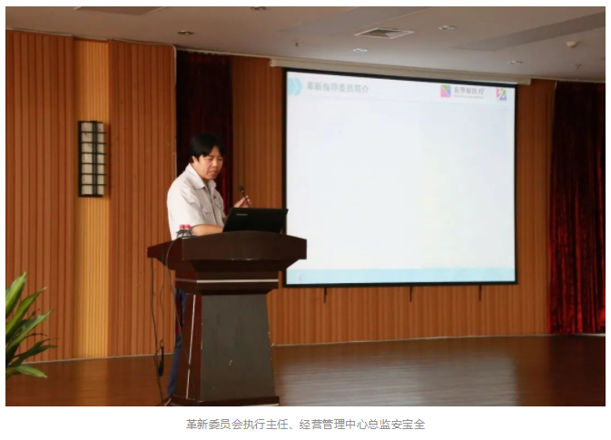 8月22日,東華原醫(yī)療第二次系統(tǒng)革新活動(dòng)啟動(dòng)儀式及革新指導(dǎo)交流大會(huì)在總部多功能廳舉行,東華原醫(yī)療董事長(zhǎng)南龍、總經(jīng)理姜黎濱以及總部各中心科長(zhǎng)及以上員工參會(huì),經(jīng)營(yíng)管理中心總監(jiān)安寶全主持。