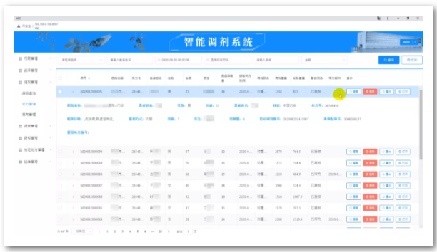 在調(diào)劑管理的處方查詢頁面,詳細(xì)列出了處方信息,并標(biāo)注處方當(dāng)前的進(jìn)行狀態(tài),如“已復(fù)核”“已審方”等,便于管理人員進(jìn)行查看、打印等各項(xiàng)操作。同時,也為查詢整體處方情況提供了便利。