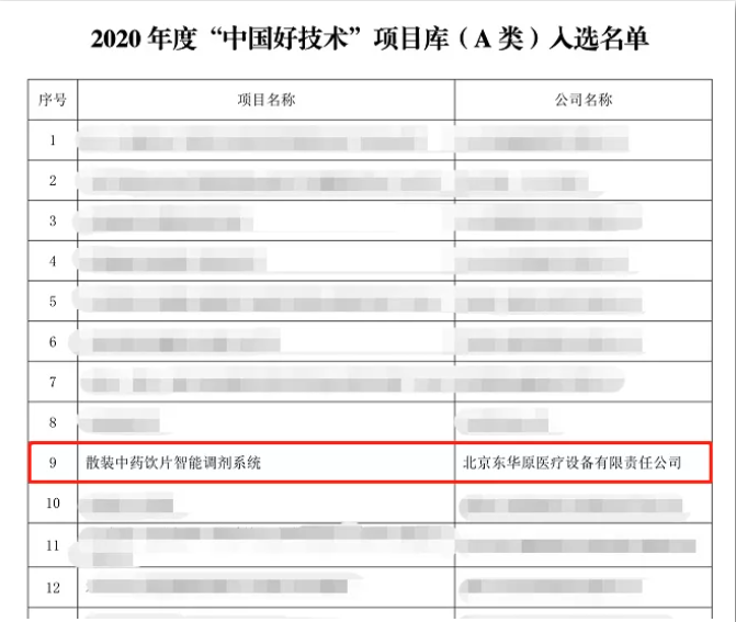 2020年度共征集“中國好技術(shù)”項(xiàng)目332個(gè),其中20個(gè)項(xiàng)目入選“中國好技術(shù)”項(xiàng)目庫(A類),東華原醫(yī)療“散裝中藥飲片智能調(diào)劑系統(tǒng)”技術(shù)榜上有名。此次“中國好技術(shù)”獎(jiǎng)項(xiàng)的授予是對東華原醫(yī)療智能調(diào)劑技術(shù)的有力肯定!