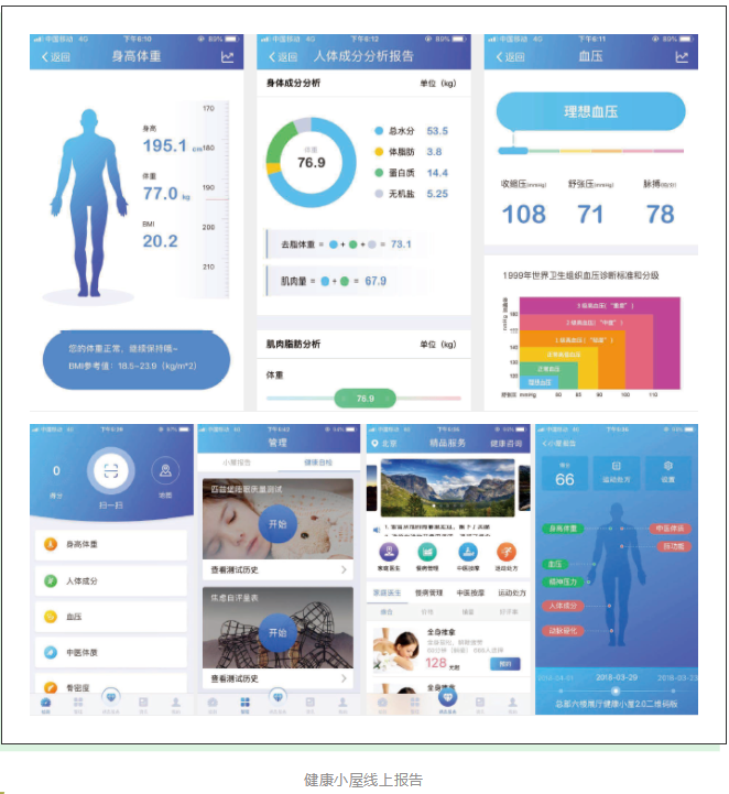 “東華原健康小屋”解決方案通過互聯(lián)網(wǎng)+創(chuàng)新健康服務(wù)平臺(tái),以未病防治、已病早治為理念,通過現(xiàn)代互聯(lián)網(wǎng)技術(shù)、信息化綜合管理平臺(tái)及系列專業(yè)醫(yī)療檢測(cè)設(shè)備,給人們提供全面的自助體檢,為每個(gè)人建立健康檔案并實(shí)時(shí)更新、追蹤管理。