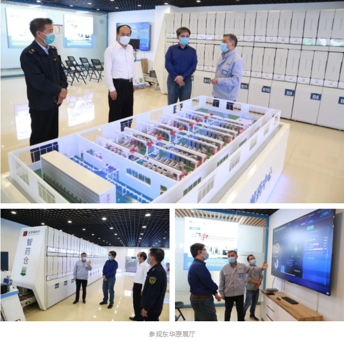 在姜黎濱總經理的介紹下,領導一行參觀了東華原展廳、多功能廳、生產車間和辦公區(qū)。展廳內,姜黎濱總經理詳細介紹了東華原智慧中藥房和健康小屋解決方案,重點講解了中藥飲片智能調劑系統(tǒng)及十功能自動煎藥機等中藥煎煮、包裝設備和人體成分分析儀、心率變異性檢測儀等健康體檢設備。北京市市場監(jiān)管局標準化處副處長李凌松、昌平區(qū)市場監(jiān)管局副局長王立兵等人對東華原中醫(yī)、醫(yī)療兩大產品線給予了高度評價。