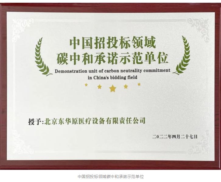 近日,經(jīng)工信部中國(guó)招標(biāo)投標(biāo)網(wǎng)評(píng)審,北京東華原醫(yī)療設(shè)備有限責(zé)任公司榮獲“中國(guó)招投標(biāo)領(lǐng)域碳中和承諾示范單位”稱號(hào),碳諾簽NO.0000599。