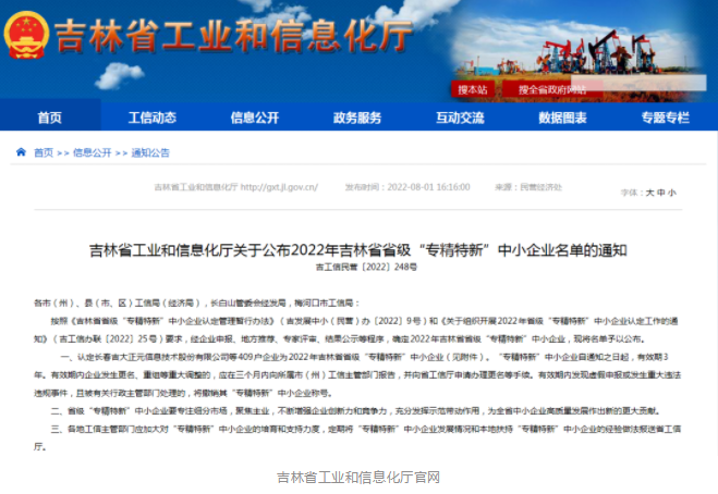 喜訊!吉林東華原榮獲吉林省省級(jí)“專精特新”中小企業(yè)認(rèn)定