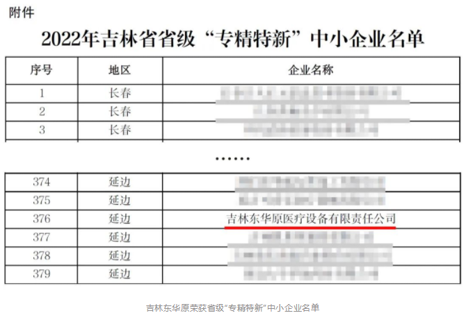 近日,吉林省工業(yè)和信息化廳發(fā)布關(guān)于公布2022年吉林省省級(jí)“專精特新”中小企業(yè)名單的通知。經(jīng)企業(yè)申報(bào)、地方推薦、專家評(píng)審、結(jié)果公示等程序,吉林東華原醫(yī)療設(shè)備有限責(zé)任公司通過(guò)層層篩選,榮獲吉林省省級(jí)“專精特新”中小企業(yè)認(rèn)定。