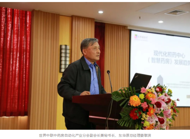 東華原中醫(yī)項(xiàng)目營(yíng)銷總監(jiān)王寧從現(xiàn)代化煎藥中心建設(shè)角度出發(fā),從智能調(diào)劑、自動(dòng)加水、自動(dòng)運(yùn)輸?shù)茸詣?dòng)化設(shè)備發(fā)揮的對(duì)湯劑質(zhì)量的控制作用作了重點(diǎn)講述,受到了與會(huì)人員的一致認(rèn)可。世界中聯(lián)中藥房自動(dòng)化產(chǎn)業(yè)分會(huì)副會(huì)長(zhǎng)兼秘書長(zhǎng)、東華原總經(jīng)理姜黎濱以《現(xiàn)代化智慧中藥房發(fā)展趨勢(shì)》為題,回顧了中藥湯劑質(zhì)量控制的發(fā)展歷史,并剖析了智慧中藥房未來的建設(shè)趨勢(shì)和影響質(zhì)量管控的關(guān)鍵因素,為中藥湯劑質(zhì)量管控提出了意見和建議。