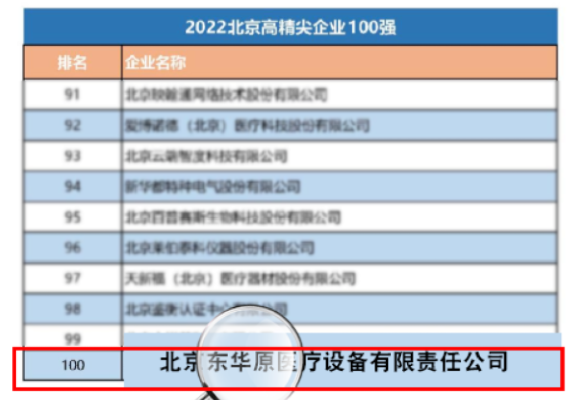 點(diǎn)贊 | 東華原醫(yī)療榮登“2022北京高精尖企業(yè)100強(qiáng)”榜單