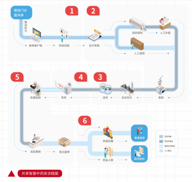 東華原智慧中藥房解決方案是運(yùn)用計(jì)算機(jī)控制、物聯(lián)網(wǎng)及互聯(lián)網(wǎng)技術(shù),以煎藥、包裝設(shè)備為中心,將煎藥工藝的多個(gè)流程、終端客戶服務(wù)、設(shè)備和人員管理、煎藥工藝質(zhì)量控制等環(huán)節(jié)進(jìn)行全過程控制與管理的創(chuàng)新煎藥服務(wù)模式。目前,東華原智慧中藥房(現(xiàn)代化煎藥中心)已在全國落地300余家,成為中醫(yī)藥現(xiàn)代化的中堅(jiān)力量。