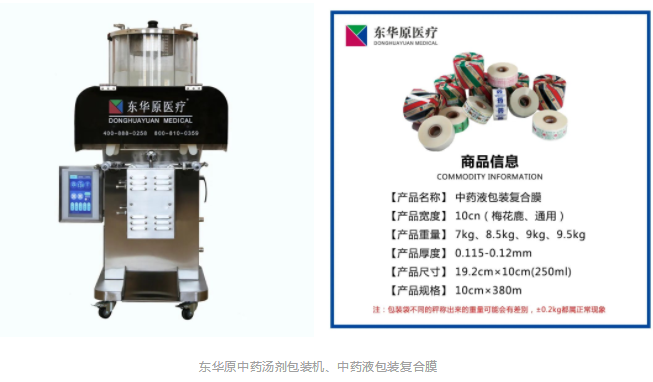 東華原中藥湯劑包裝機(jī)自動(dòng)包裝、根據(jù)處方醫(yī)囑50-250ml無級變量可調(diào)包裝。