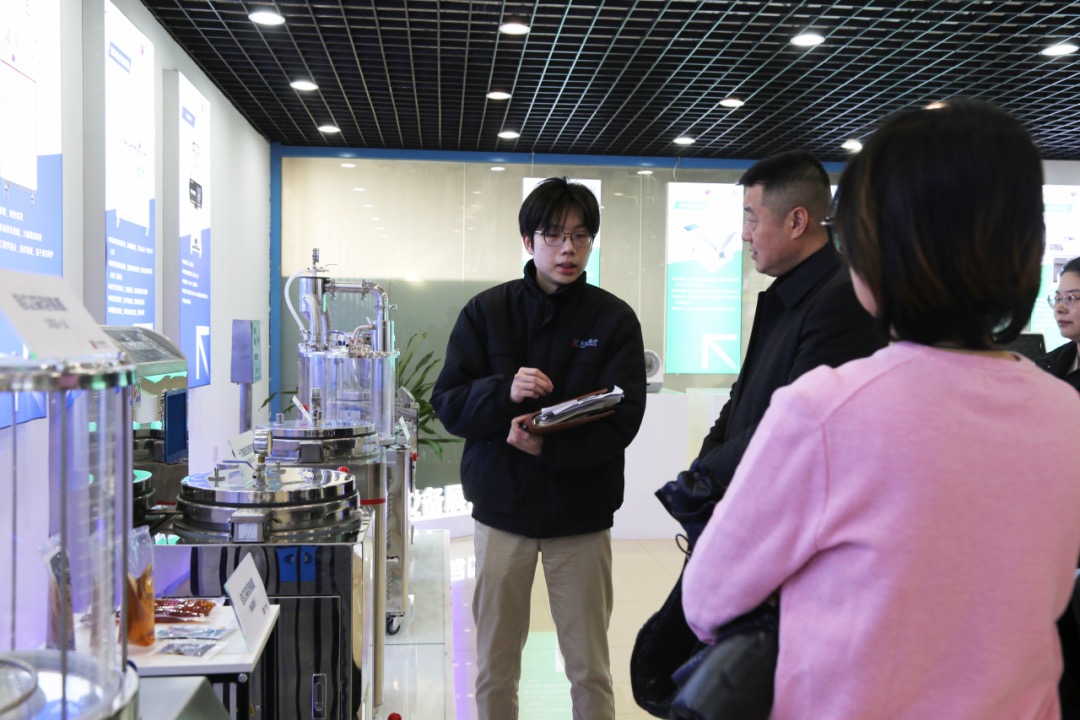 在南程副總的介紹下,劉慶海書記一行首先參觀了東華原產(chǎn)品展廳,詳細(xì)了解了東華原在中醫(yī)藥設(shè)備和醫(yī)療健康體檢設(shè)備領(lǐng)域的最新成果。領(lǐng)導(dǎo)們對東華原在中藥煎煮設(shè)備及智慧中藥房整體解決方案中取得的成就表示高度贊賞,并親自體驗心率變異性檢測儀,切身感受了科技賦能醫(yī)療的無限魅力。