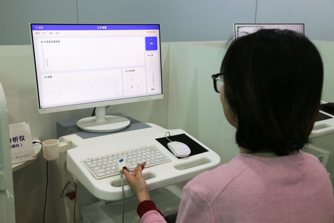 區(qū)工商聯(lián)領(lǐng)導(dǎo)正在體驗東華原心率變異性檢測