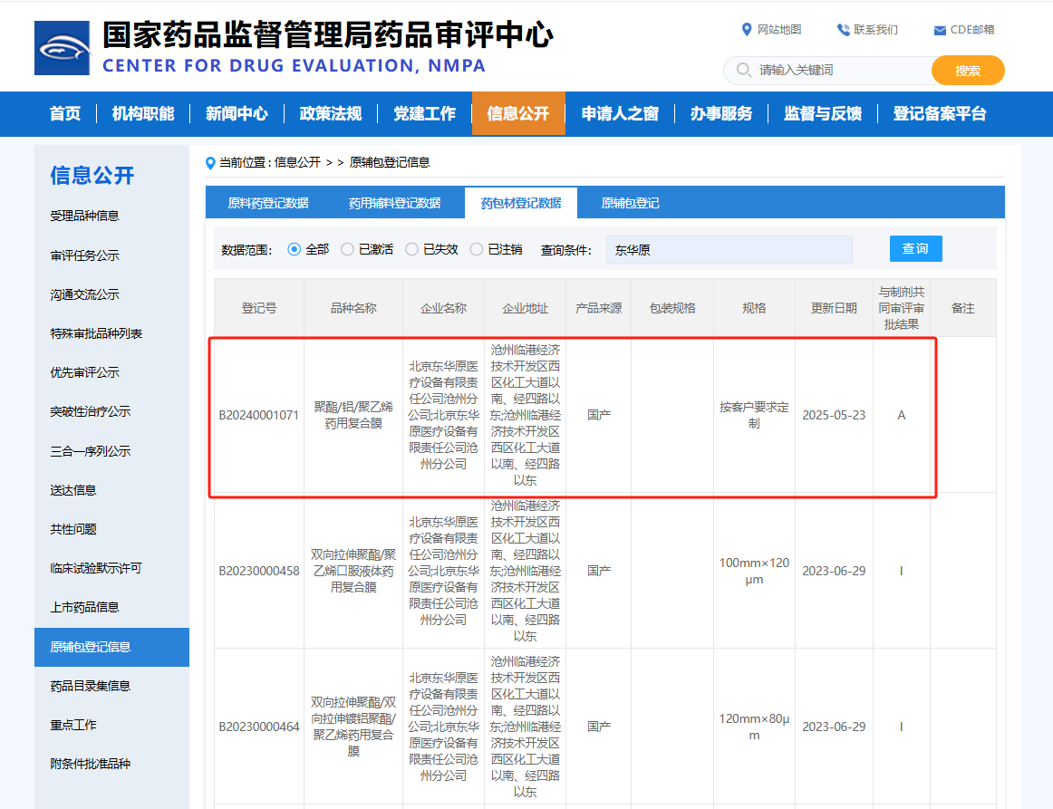 東華原一直以高標(biāo)準(zhǔn)、嚴(yán)要求進(jìn)行聚酯/鋁/聚乙烯藥用復(fù)合膜的生產(chǎn)。此次聚酯/鋁/聚乙烯藥用復(fù)合膜獲“A”級(jí)公示,標(biāo)志著該產(chǎn)品在安全性、功能性及合規(guī)性方面達(dá)到國家藥品包裝材料的高標(biāo)準(zhǔn),彰顯出東華原在生產(chǎn)工藝和質(zhì)量控制上的嚴(yán)格要求,為藥品質(zhì)量保障再添權(quán)威背書。