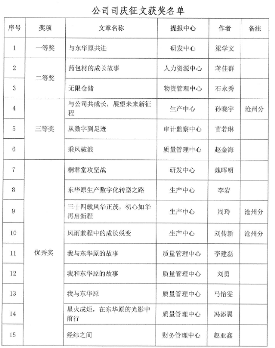 為慶祝東華原成立34周年 ,展現(xiàn)公司輝煌成就? ,回首34年來東華原人代代相承的企業(yè)精神,公司舉辦了“公司司慶征文評選活動”。?