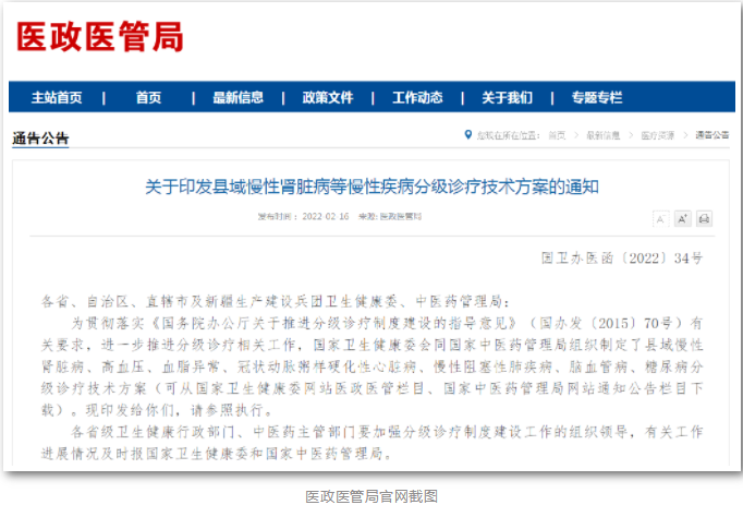 近日,國家衛(wèi)生健康委辦公廳、國家中醫(yī)藥管理局印發(fā)《縣域高血壓分級診療技術(shù)方案》(以下簡稱方案),為各縣域醫(yī)療機構(gòu)更好的落實自身功能定位,為高血壓患者提供一體化、高質(zhì)量的醫(yī)療服務(wù),改善患者生存質(zhì)量、有效降低國家和患者的疾病負擔提供助力。