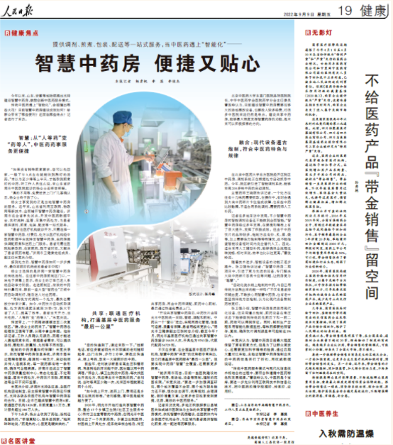 東華原智慧中藥房解決方案登上人民日?qǐng)?bào)健康版面頭條
