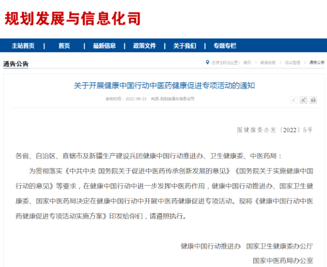 健康前沿 | 《健康中國行動中醫(yī)藥健康促進專項活動》發(fā)布