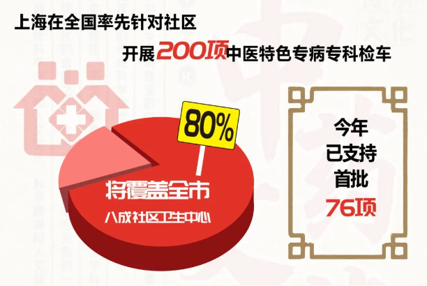 依托民心工程新三年行動計劃,上海還在全國率先針對社區(qū)開展200項中醫(yī)特色專病專科建設(shè),將覆蓋全市80%的社區(qū)衛(wèi)生中心,今年已支持首批76項。同時,上海推出社區(qū)中醫(yī)基本病種清單,覆蓋114種疾病,在國家清單基礎(chǔ)上增加了44種。目前,上海各社區(qū)平均可開展中醫(yī)基本病種服務(wù)達到60余種。