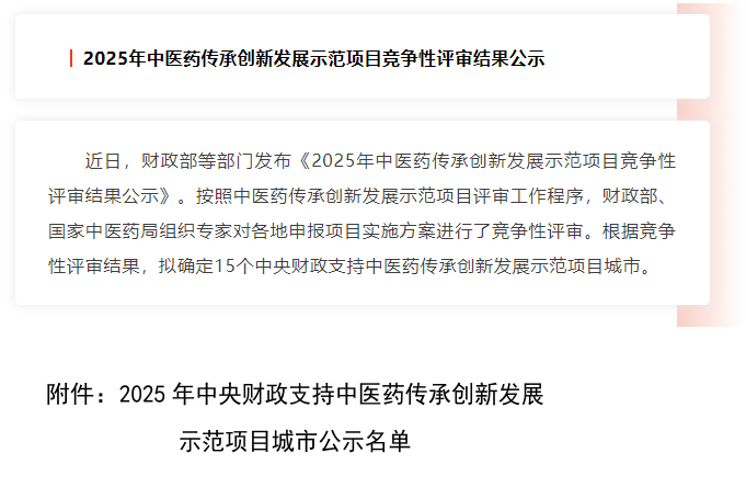 名單公示!這15個城市獲中央財政支持中醫(yī)藥傳承創(chuàng)新發(fā)展示范項目