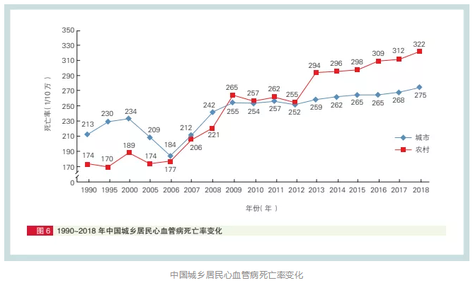 中國(guó)心血管病患病率處于持續(xù)上升階段。2018年,心血管病死亡率仍居首位,高于腫瘤及其他疾病。農(nóng)村心血管病死亡率從2009年起超過(guò)并持續(xù)高于城市水平。