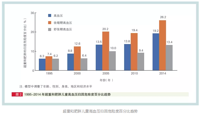 2010年全國(guó)學(xué)生體質(zhì)調(diào)查顯示,中國(guó)學(xué)齡兒童高血壓患病率為14.5%,男生高于女生(16.1%vs.12.9%)。中國(guó)健康與營(yíng)養(yǎng)調(diào)查1991—2015年九次現(xiàn)況調(diào)查,地區(qū)學(xué)齡兒童高血壓患病率從1991年的8.9%上升到2015年的20.5%。而肥胖是兒童青少年原發(fā)性高血壓的第一位危險(xiǎn)因素。