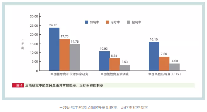 對(duì)于成年人來(lái)說(shuō),數(shù)據(jù)一樣不容樂(lè)觀?,F(xiàn)階段我國(guó)成年人血脂異常知曉率、治療率和控制率總體仍處于較低水平。2012—2015年CHS調(diào)查顯示,中國(guó)≥35歲成人對(duì)血脂異常的知曉率為16.10%、治療率為7.80%、控制率為4.00%。