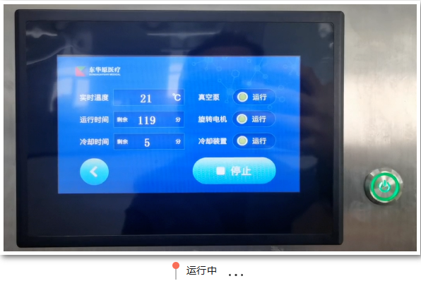 微波發(fā)生器開始工作,對中藥液內的水分進行加熱蒸發(fā),產生的水蒸氣被真空泵抽走,在監(jiān)控屏畫面上可以看到真空腔內的實時情景;