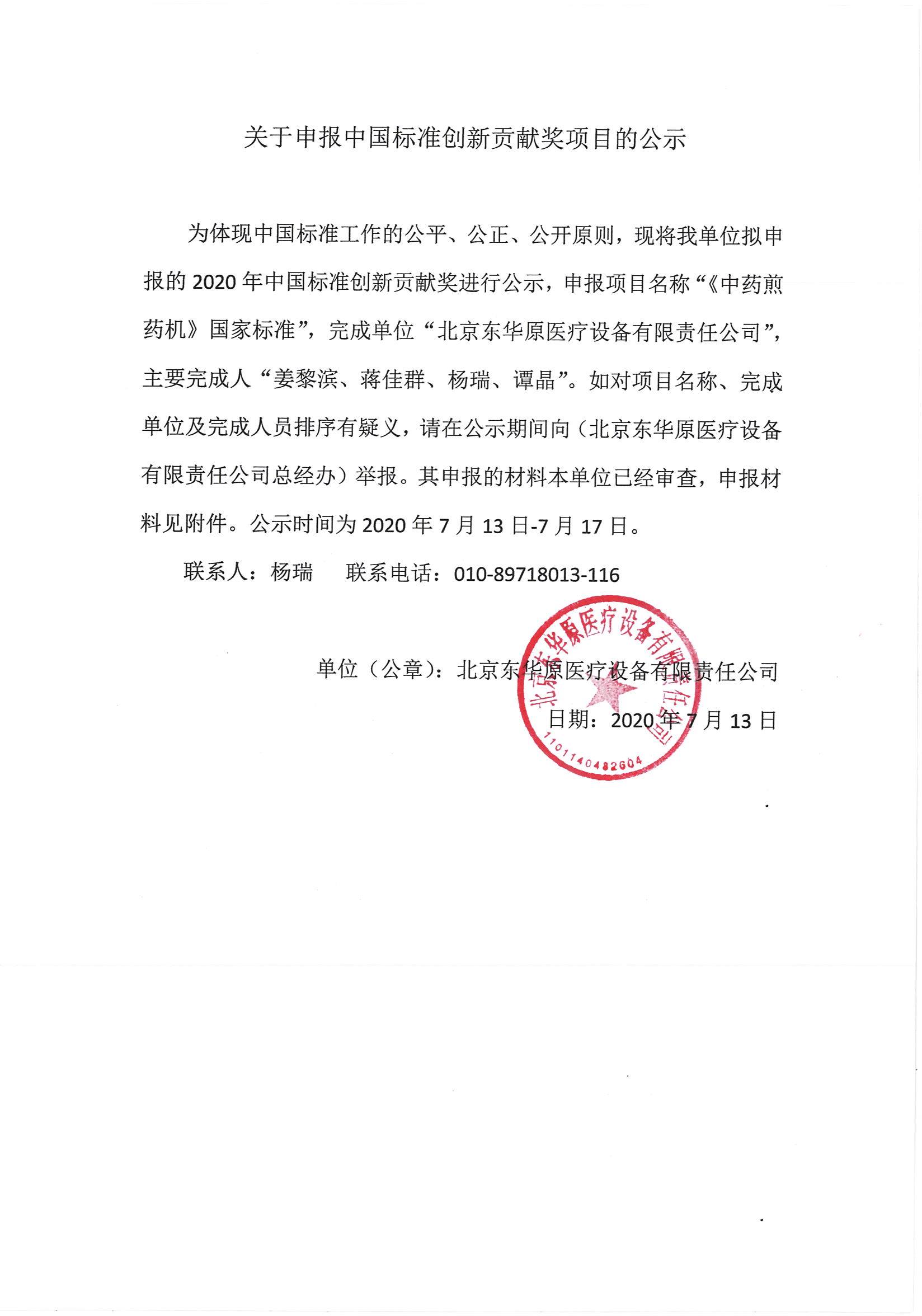 關(guān)于申報(bào)中國標(biāo)準(zhǔn)創(chuàng)新貢獻(xiàn)獎(jiǎng)項(xiàng)目的公示