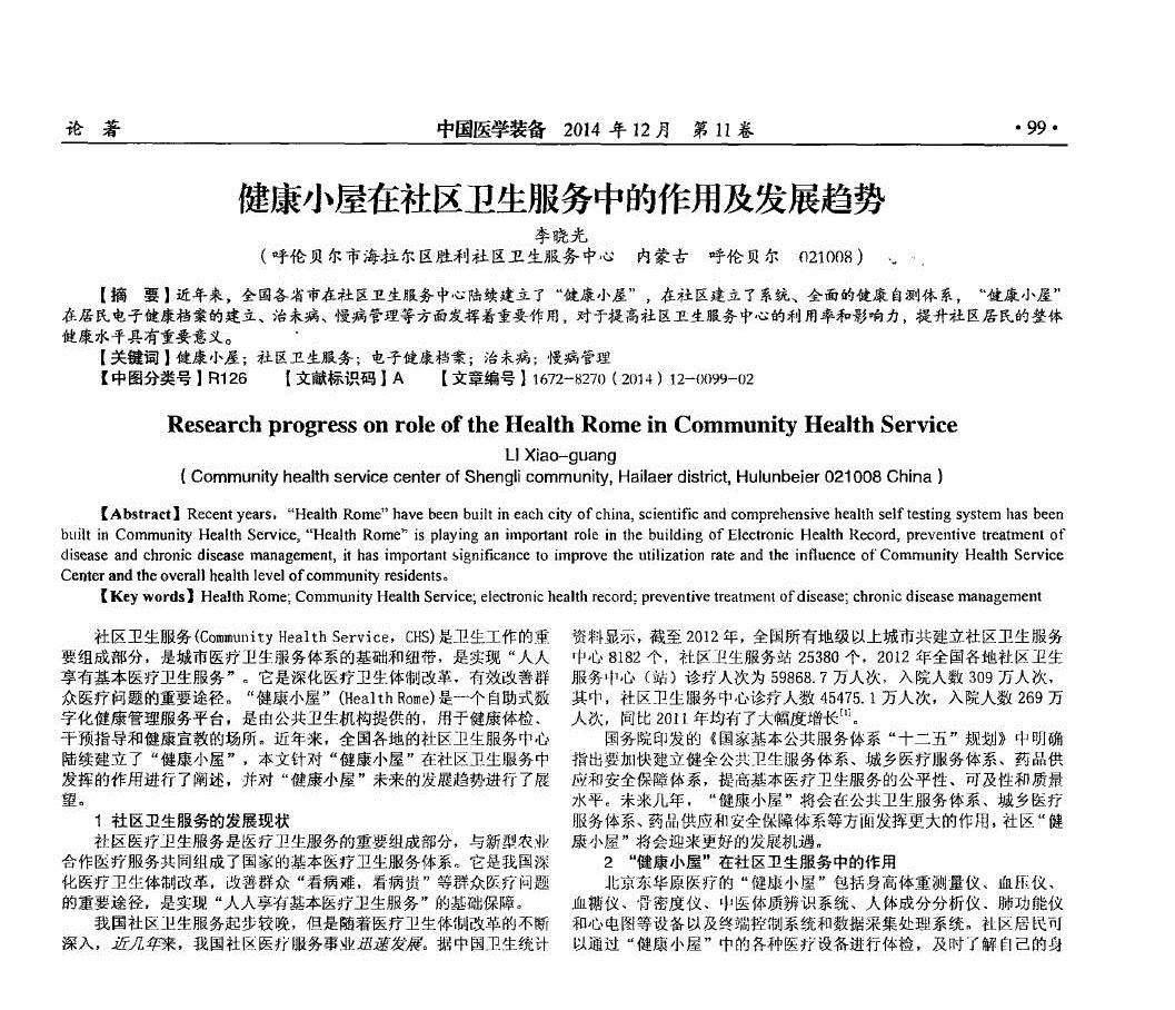 健康小屋在社區(qū)衛(wèi)生服務(wù)中的作用及發(fā)展趨勢(shì)