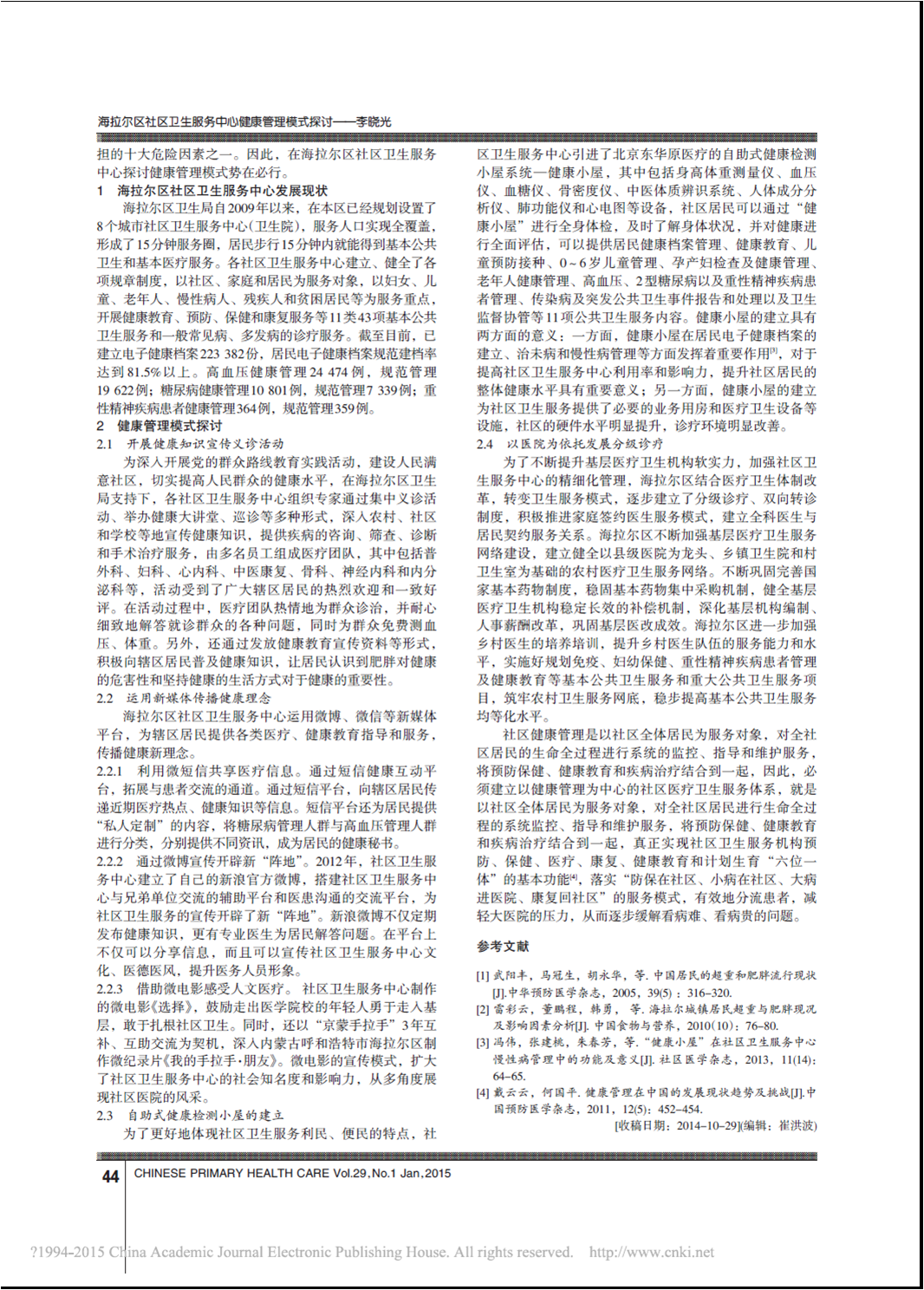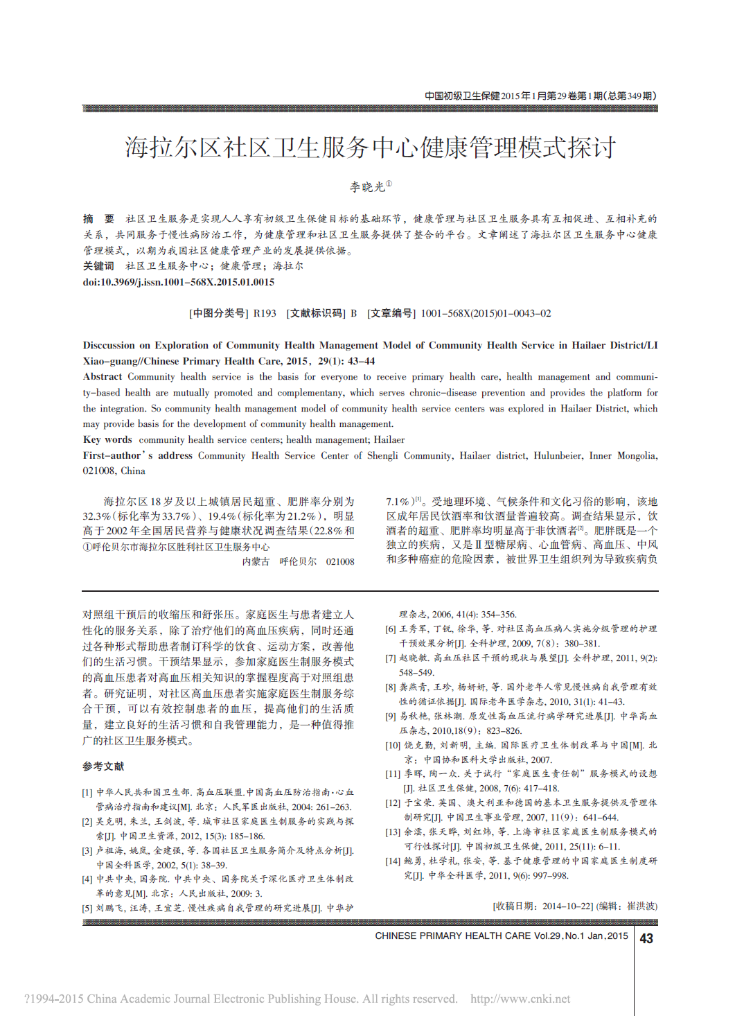 海拉爾區(qū)社區(qū)衛(wèi)生服務(wù)中心健康管理模式探討
