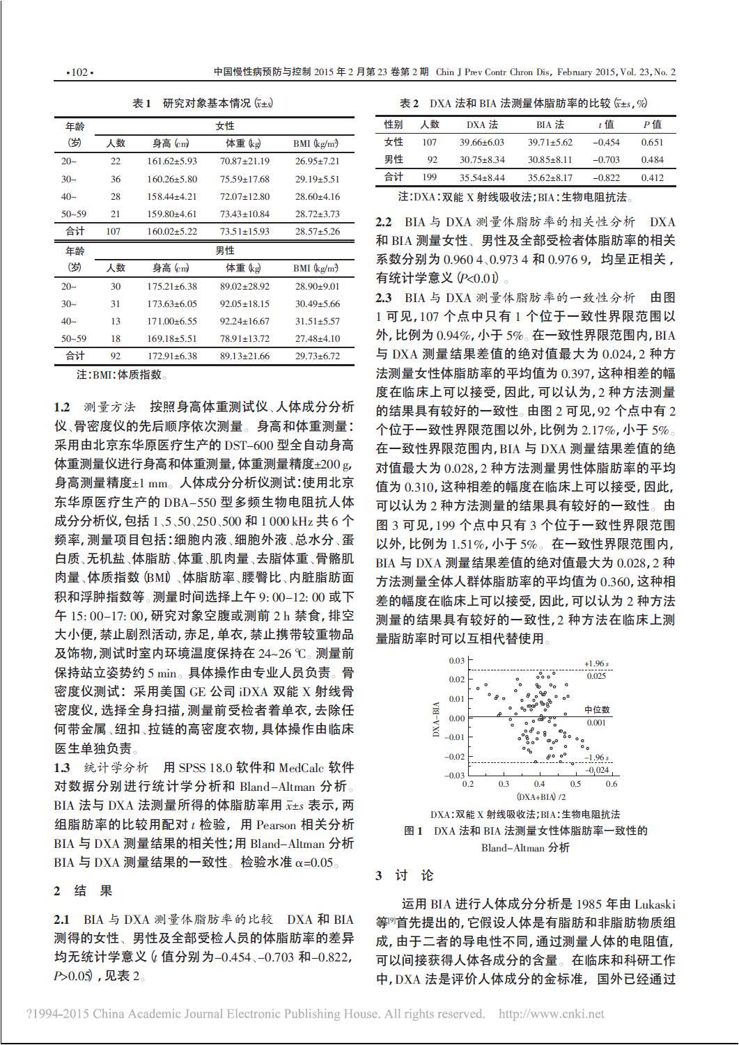 生物電阻抗分析法和雙能X射線吸收法測(cè)量人體脂肪率的對(duì)比研究