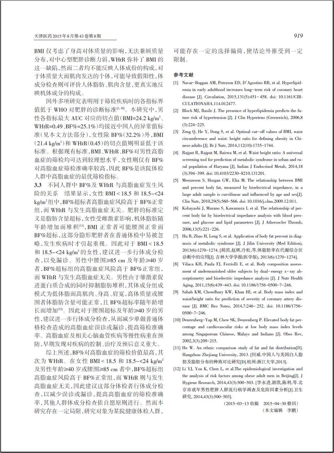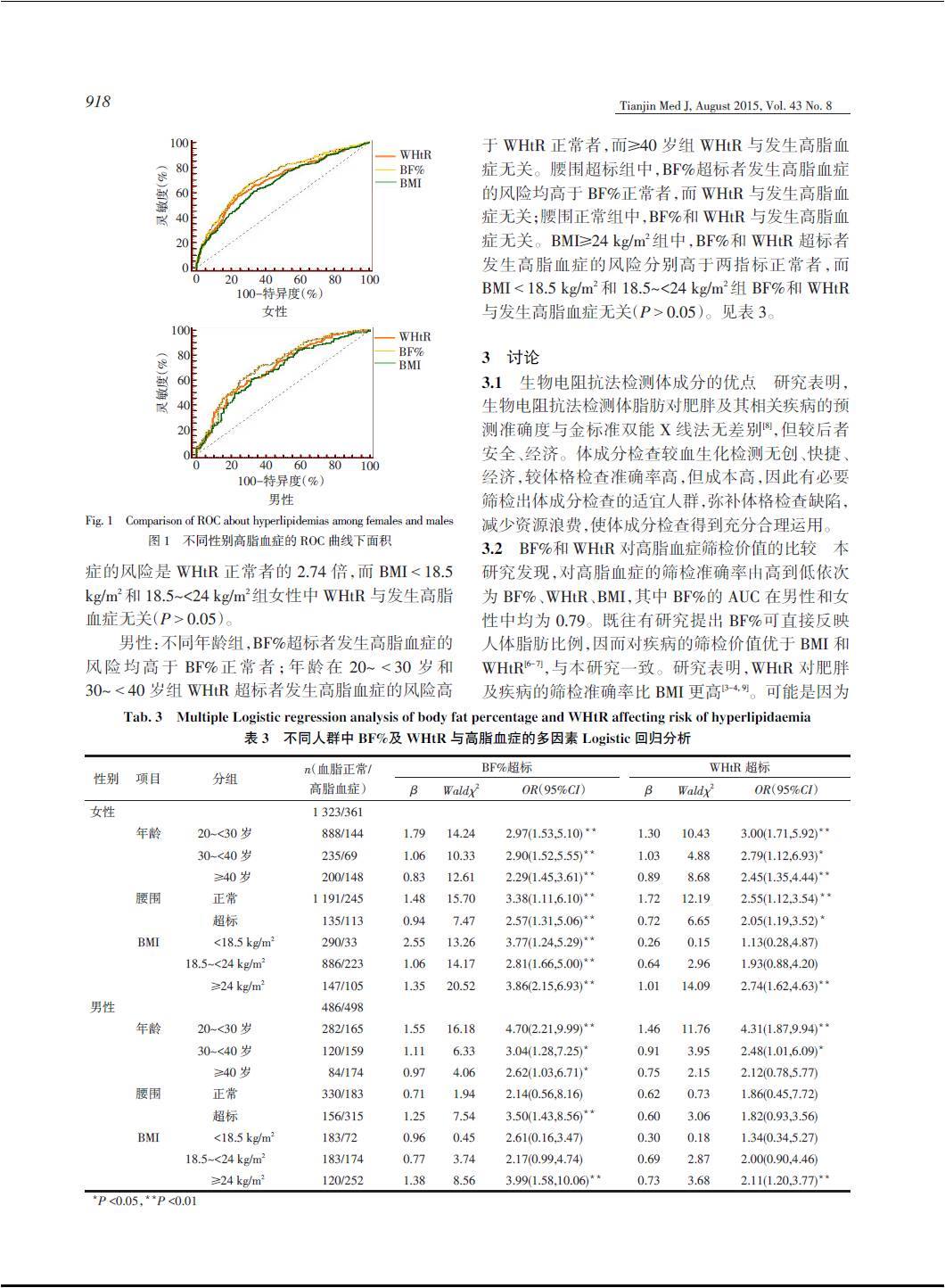 生物電阻抗分析法和雙能X射線吸收法測量人體脂肪率的對比研究