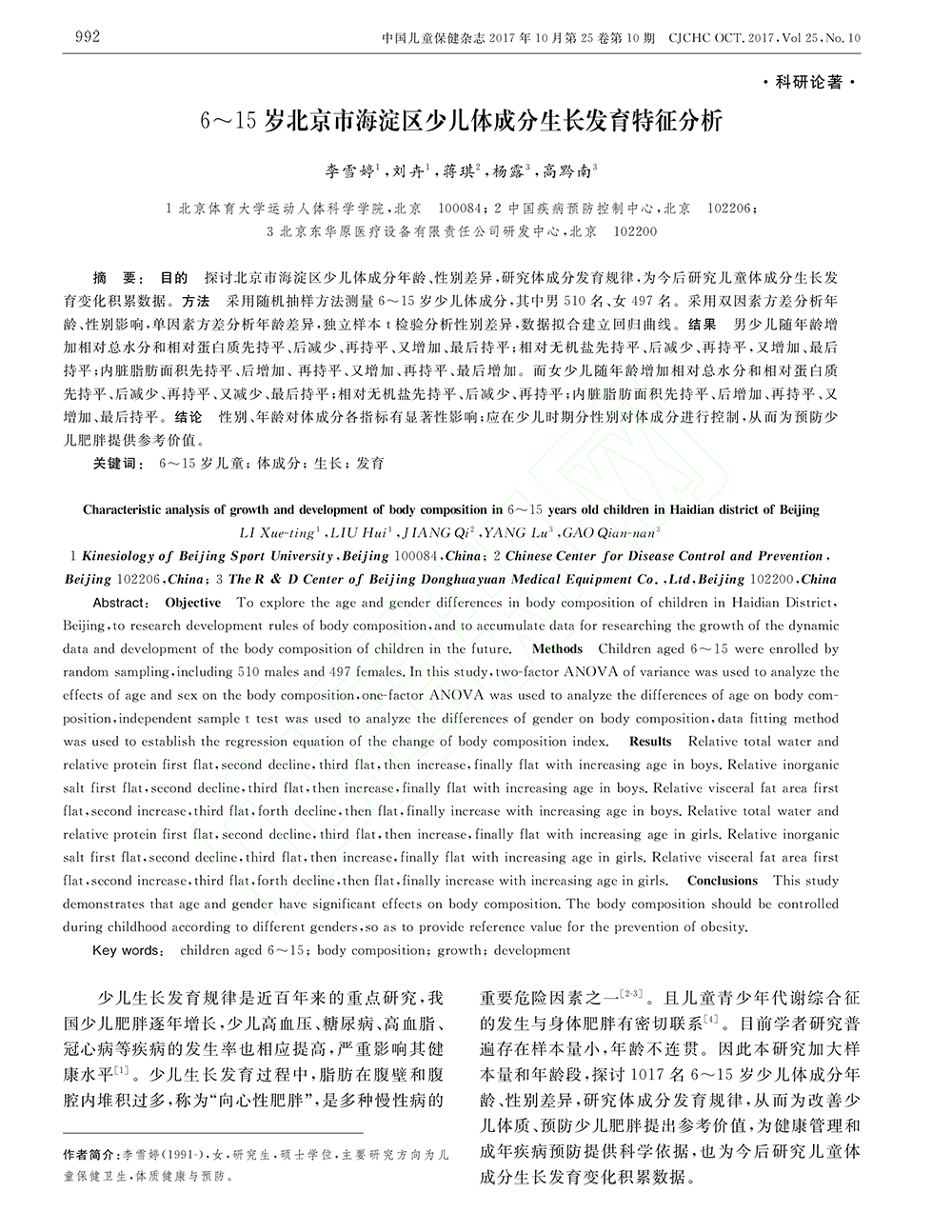 6_15歲北京市海淀區(qū)少兒體成分生長發(fā)育特征分析