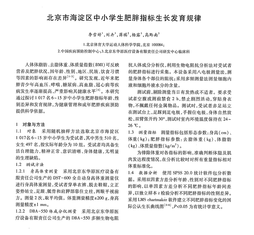 北京市海淀區(qū)中小學(xué)生肥胖指標(biāo)生長(zhǎng)發(fā)育規(guī)律