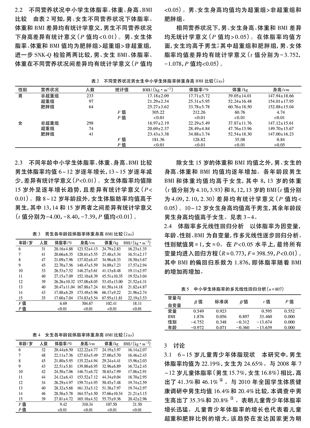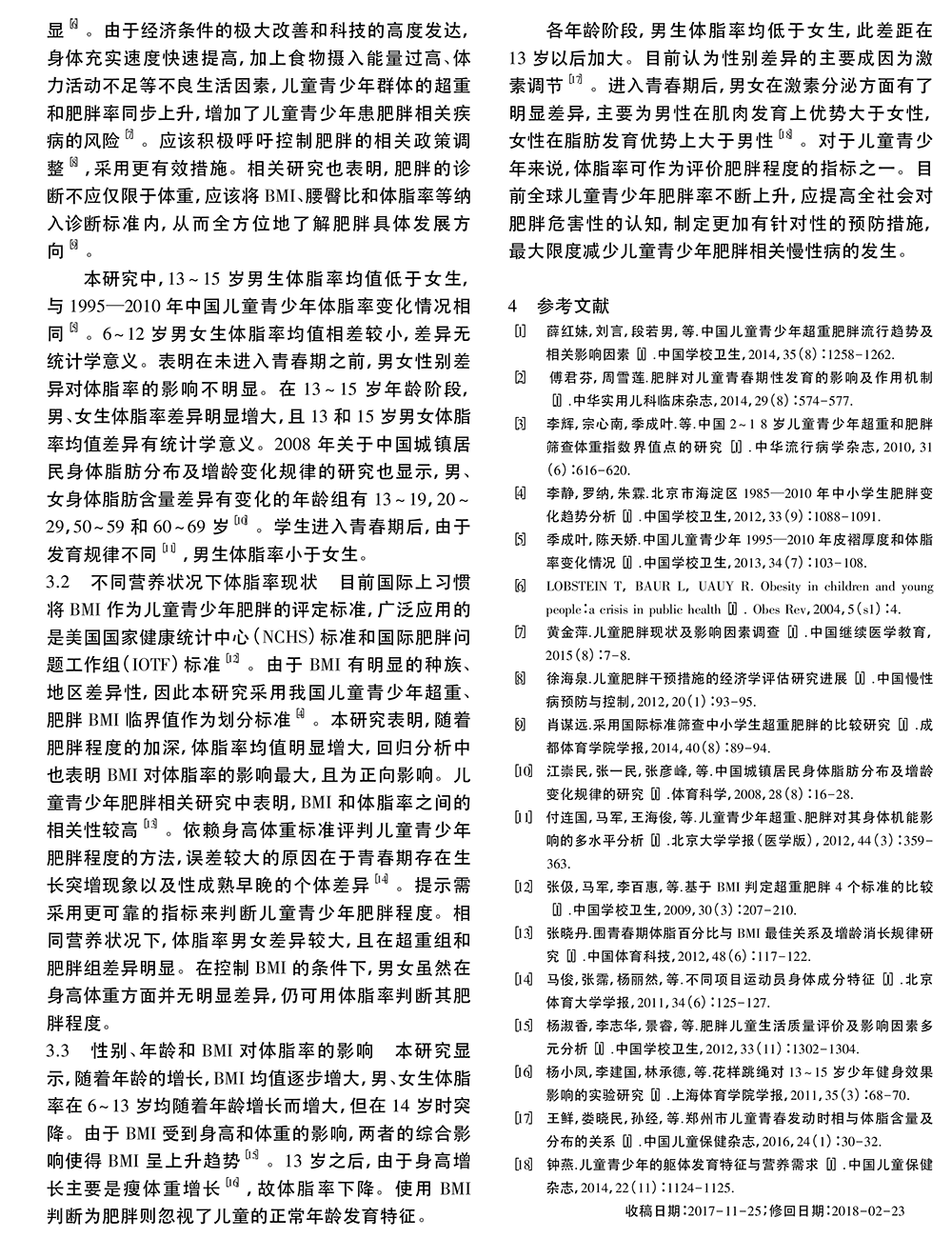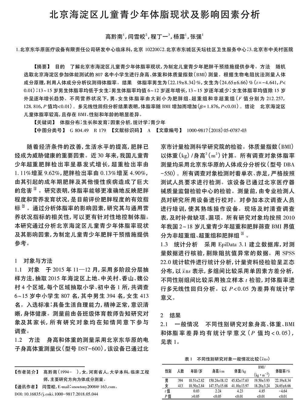 北京海淀區(qū)兒童青少年體脂現(xiàn)狀及影響因素分析