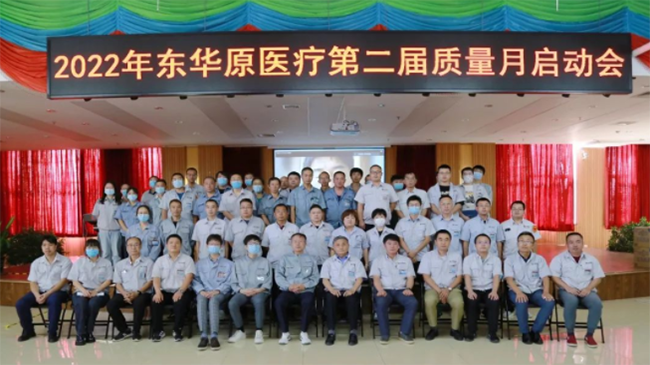 - 在全国第45个“质量月”到来之际,东华原第二届质量月启动会于9月6日在总部多功能厅正式举行。今年东华原质量月活动主题为“质量成就效益品牌,全员守卫赢得未来”。董事长南龙、总经理姜黎滨、董事长特别助理南程、董事长特别助理南永军、研发中心副总经理康永强、营销中心总监杨玉洲、生产中心总监王永基,经营管理中心总监安宝全、研发中心总监南原、人力资源中心副总监蒋佳群、物资管理中心副总监吴峰等出席,会议由质量管理