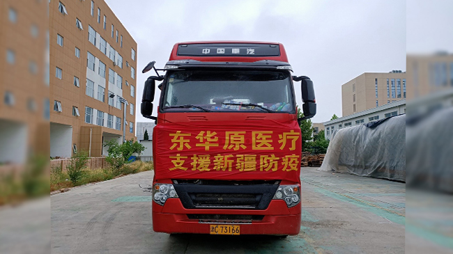- 7月25日晚上9时20分,东华原医疗第一批支援新疆的各型号设备298台及包装耗材750套装车完毕。满载的货车驶出大门,奔赴新疆。车上运载了60台十功能煎药机、148台包装机、其他各种不同规格的煎药机90台。在此之前,24日,东华原医疗1300套包装卷已经踏上通往新疆的路。这一次,我们一辆17.5米、一辆13米、一辆9.6米的三辆大货车,满载着希望,出发!