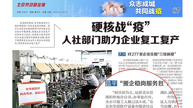 中国中医药报、中国人口福利基金会以及北京劳动就业报纷纷点赞东华原医疗抗疫速度,并做出了相关报道。