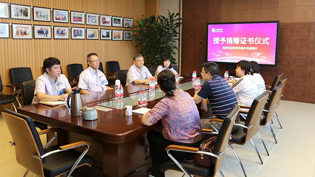 2019年7月1日下午,北京市昌平区城南街道工委副书记、办事处主任曾波、副主任刘淑芬及负责慈善捐款的相关科室人员莅临东华原医疗,为公司颁发慈善捐赠证书并进行了深入的交流。东华原医疗董事长南龙、总经理姜黎滨、董事长特助南永军、人力资源中心副总监蒋佳群热情接待。