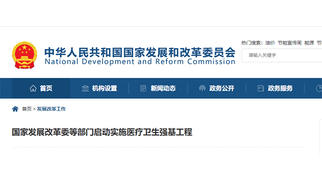 - 按照中央经济工作会议精神,近期国家发展改革委会同国家卫生健康委等部门启动实施医疗卫生强基工程,着力补齐基层医疗卫生服务短板弱项。