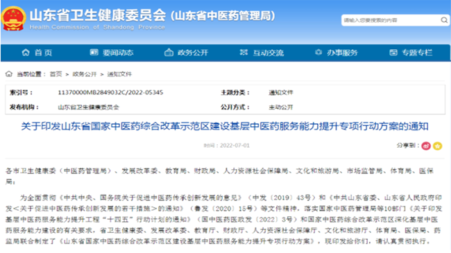 基层中医药十个“全覆盖”:山东省国家中医药综合改革示范区建设基层中医药服务能力提升专项行动方案发布!