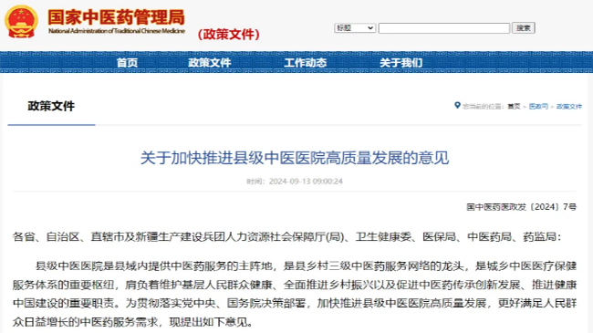 - 近日,国家中医药局、人力资源社会保障部、国家卫生健康委、国家医保局、国家药监局五部委联合下发《关于加快推进县级中医医院高质量发展的意见》(简称“《意见》”),提出完善县级中医医院设置等五方面16项建设任务。《意见》明确提出,要加强县级中医医院医共体建设,鼓励县级中医医院积极牵头组建紧密型县域医共体,发挥县域内中医医疗中心作用指导各成员单位提升中医药服务能力。健全县级中医医院中药房设置和中药技术人员